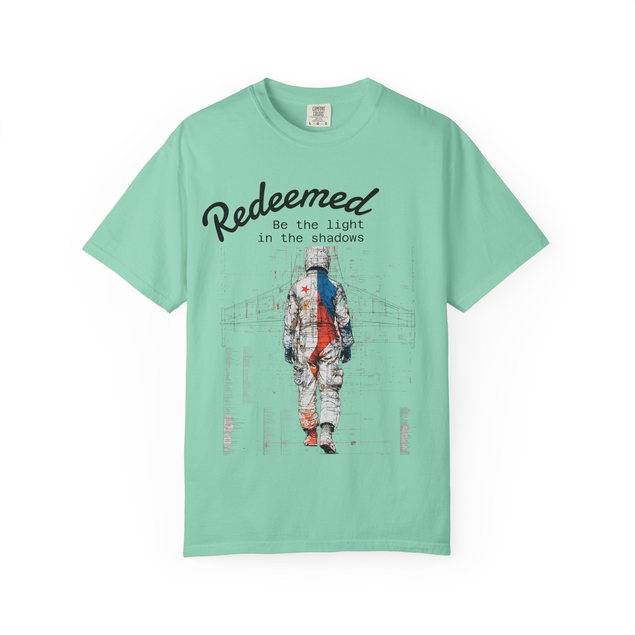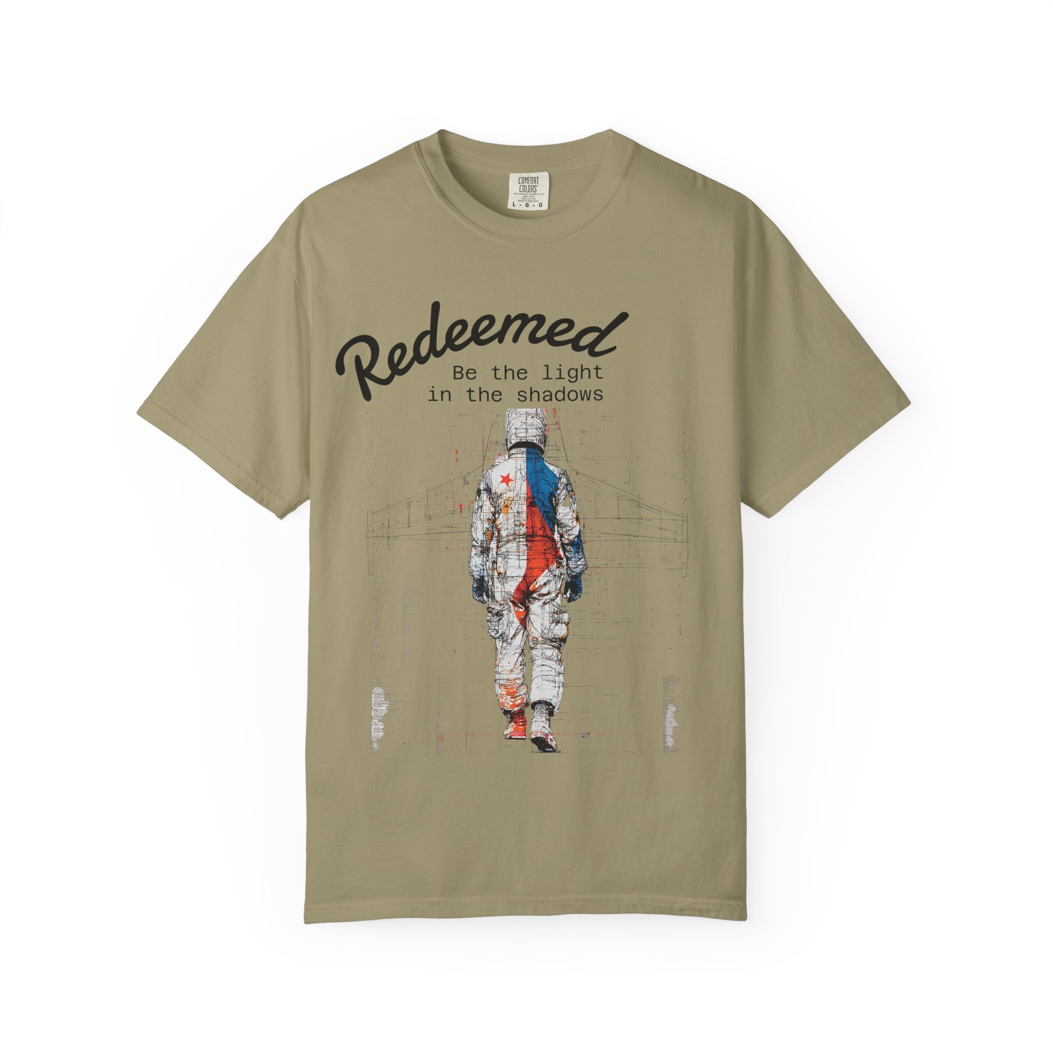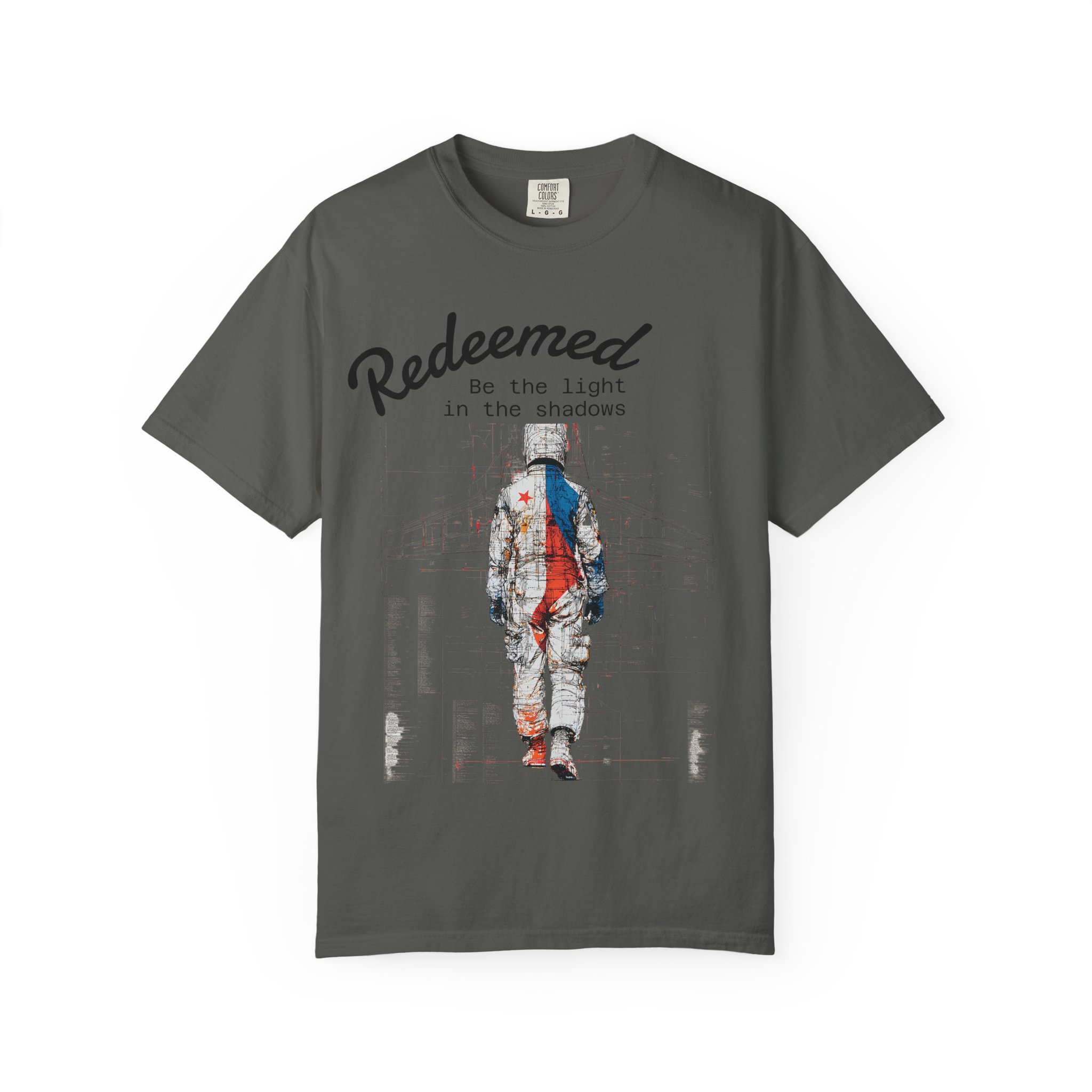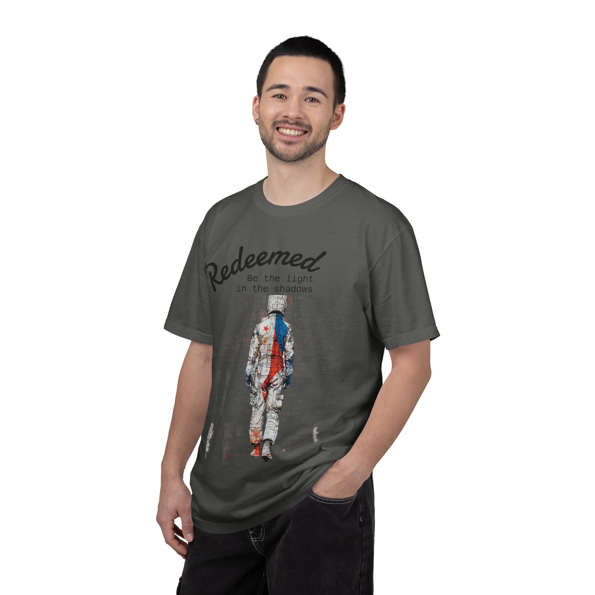 This garment-dyed tee carries a quiet, purposeful voice. A lone figure walks away, draped in a subtle wash of color and the word “Redeemed” above — it reads like a promise, a gentle reminder to carry light into darker places. The heavyweight 100% cotton feels substantial yet worn-in soft from the first wear, and the relaxed fit sits easily under jackets or worn alone. Worn by someone who values meaning over noise, this shirt moves from volunteer shifts to reflective mornings, standing in for resilience and steady faith rather than flashy statements. Colors are softened by the garment-dye process, so the print and fabric blend into one lived-in look that feels personal from the first wear.