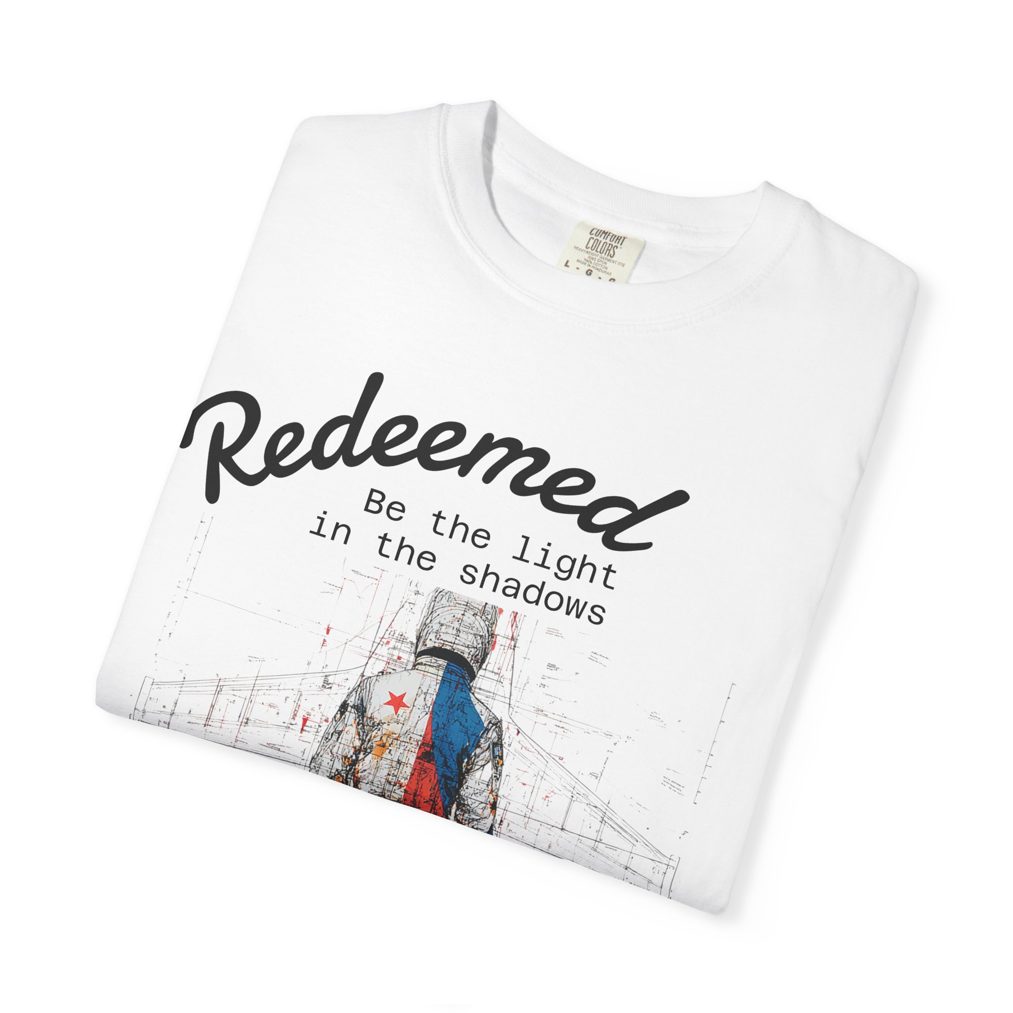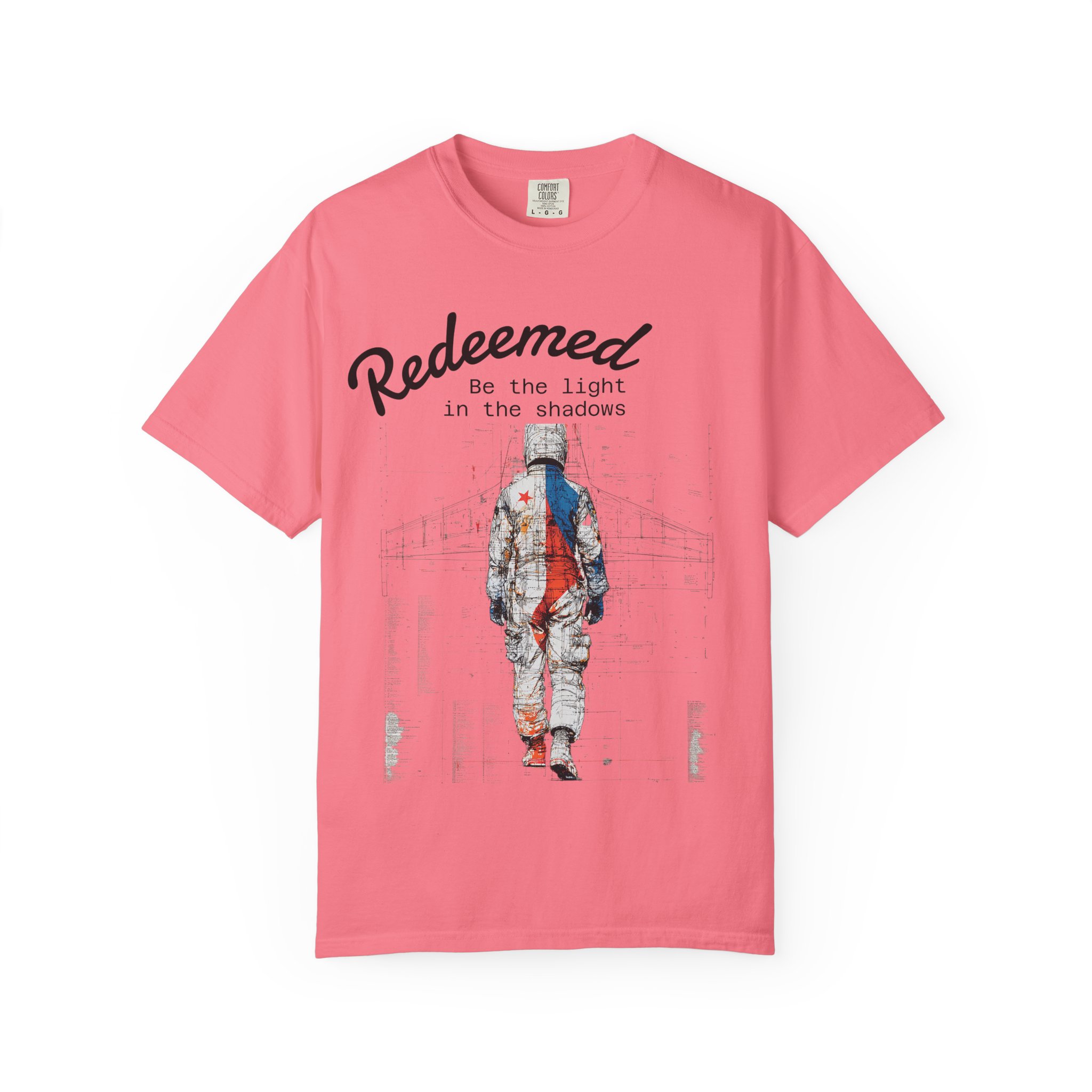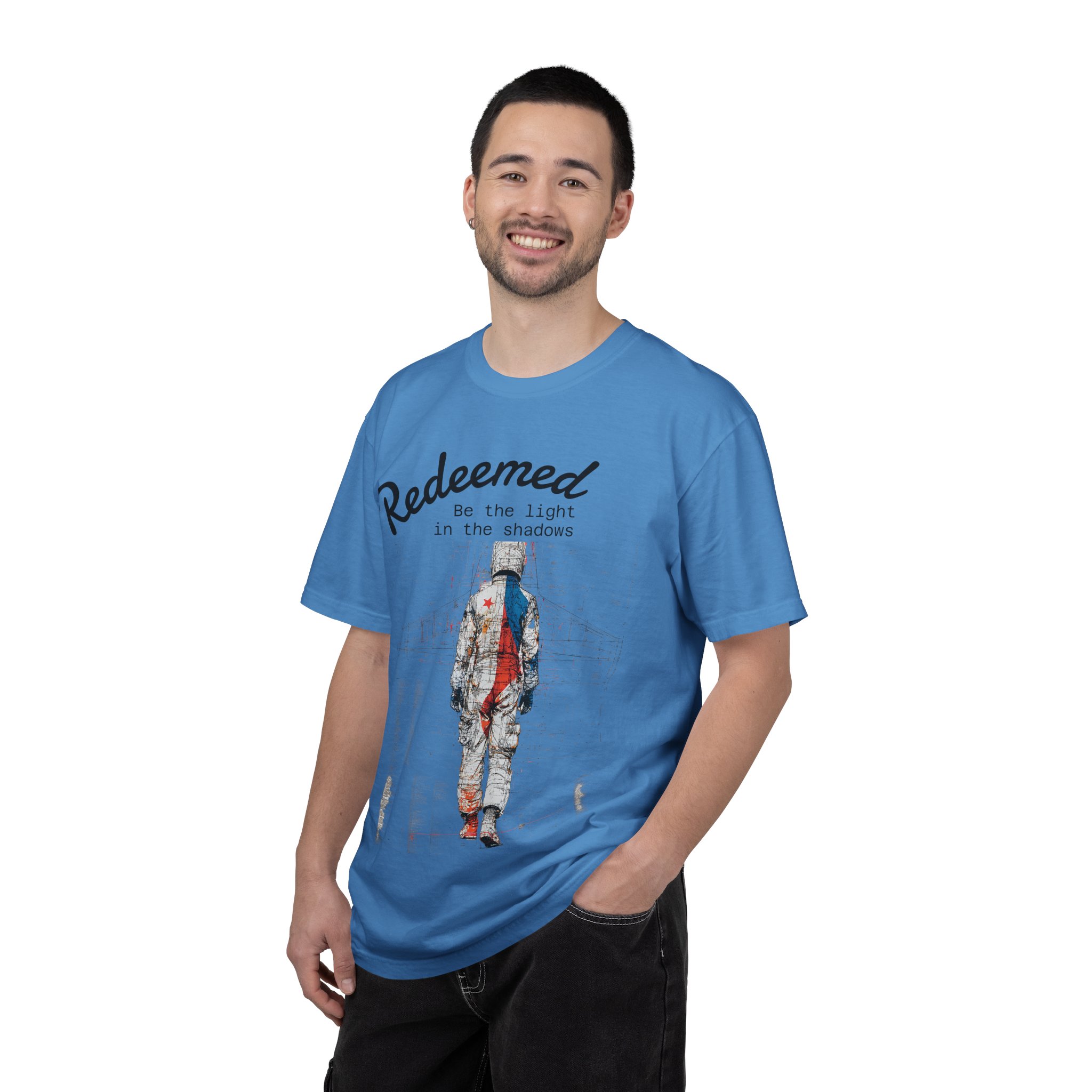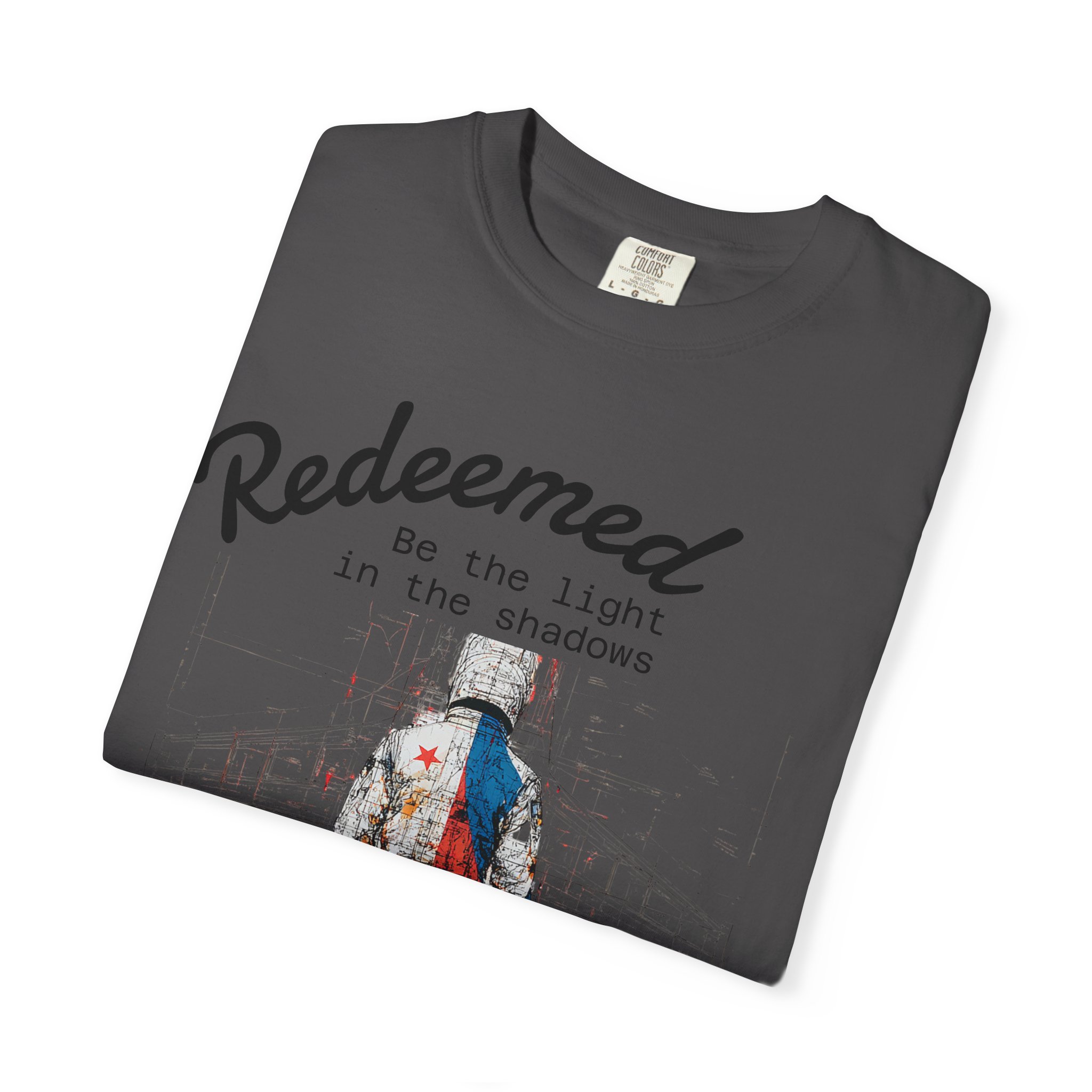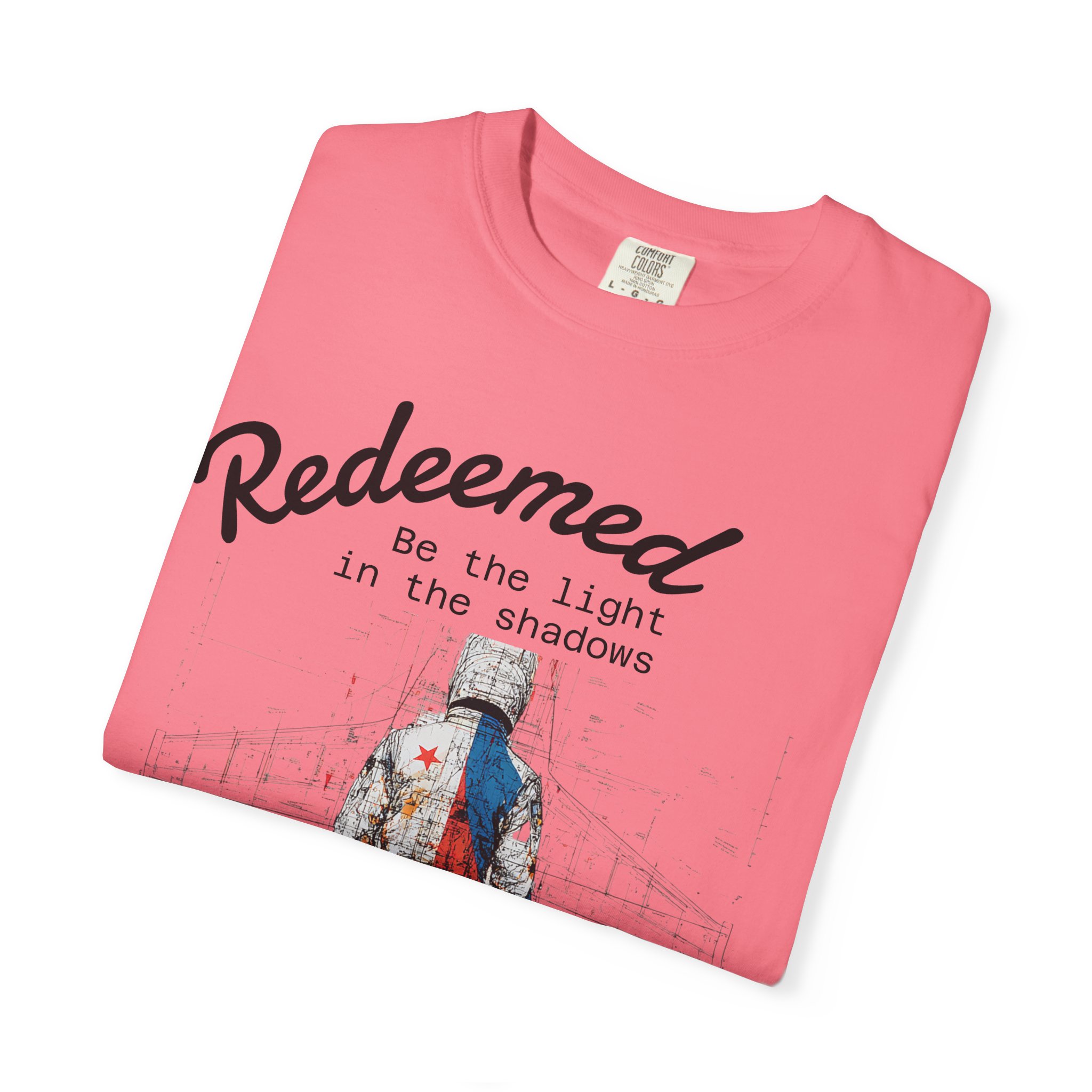 This garment-dyed tee carries a quiet, purposeful voice. A lone figure walks away, draped in a subtle wash of color and the word “Redeemed” above — it reads like a promise, a gentle reminder to carry light into darker places. The heavyweight 100% cotton feels substantial yet worn-in soft from the first wear, and the relaxed fit sits easily under jackets or worn alone. Worn by someone who values meaning over noise, this shirt moves from volunteer shifts to reflective mornings, standing in for resilience and steady faith rather than flashy statements. Colors are softened by the garment-dye process, so the print and fabric blend into one lived-in look that feels personal from the first wear.